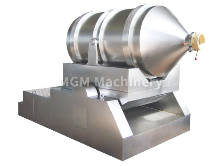 This machine transfers powder or granular materials through vacuum transportation or manual feeding into a double cone container. As the container continues to rotate, the materials undergo complex impact movements in the container, achieving uniform mixing.