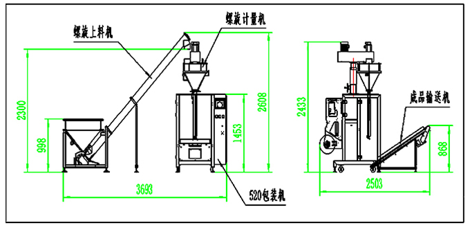 8.Recommended accessories: screw feeder+screw metering machine+520 packaging host+finished product conveyor