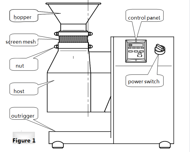 The sieve is fixed, and the grinding blade rotates clockwise. During the rotation process, the cavity between the grinding blade and the sieve decreases, forcing the material to be discharged from the small holes of the sieve to achieve the purpose of granulation. The particle size is achieved by changing the sieve mesh with different pore sizes.